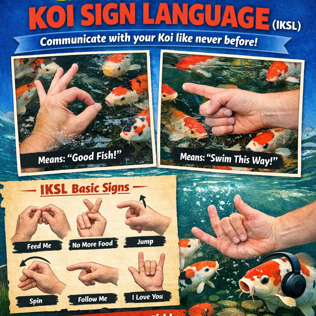 Research shows koi respond better when owners use consistent hand signals underwater. We call it IKSL.