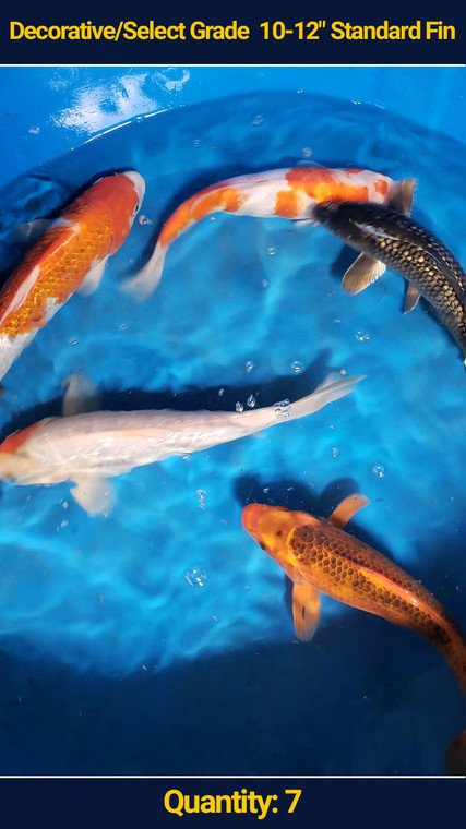 Select Grade Koi are a high grade. These fish have recognizable colors and patterns that allow easy identification of variety. Varieties that may be included but not limited to Bekko, Matsuba, Showa, Chagoi, Soragoi, Karasu, Shusui, Asagi, Hariwake, Goshiki, Sanke, Kohaku, Matsukawabakke, Kikokuryu, Ochiba, Goromo, Shiro Utsuri, Kin Ki Utsuri, Hi Utsuri, Kumonryu, Kikusui, Platinum Ogon, Kin Showa, Yamatonishiki, Hesei Nishiki, Hikari Moyo, Kawarigoi Mix,and many Gin Rin and Doitsu varieties.